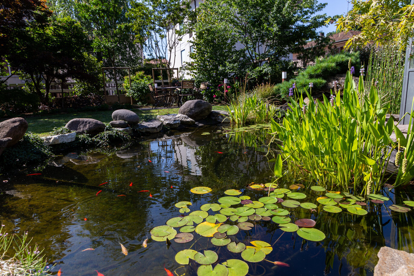 Abbiamo progettato e realizzato il rifacimento integrale del laghetto, elemento centrale del giardino: oltre ad aver